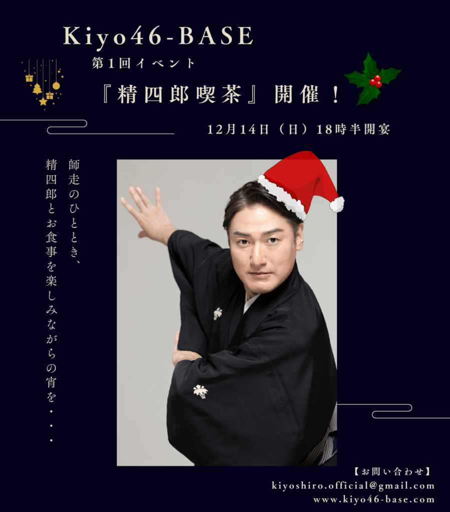カテゴリー: Fun Club 作者: n投稿日: 2025年11月18日 【Kiyo46-BASE会員の皆様へ】 この度、Kiyo46-BASE発足後初となる会員様限定イベント、『精四郎喫茶』を開催する運びとなりました。ご参加お申込み、ただいま受付中でございます。詳細は会員サイトをご覧ください。 第一回 Kiyo46-BASE『精四郎喫茶』開催のお知らせ